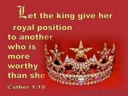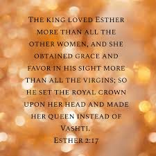 Later when King Xerxes’ fury had subsided, he remembered Vashti and what she had done and what he had decreed about her. 2 Then the king’s personal attendants proposed, “Let a search be made for beautiful young virgins for the king.3 Let the king appoint commissioners in every province of his realm to bring all these beautiful young women into the harem at the citadel of Susa. Let them be placed under the care of Hegai, the king’s eunuch, who is in charge of the women; and let beauty treatments be given to them. 4 Then let the young woman who pleases the king be queen instead of Vashti.” This advice appealed to the king, and he followed it.