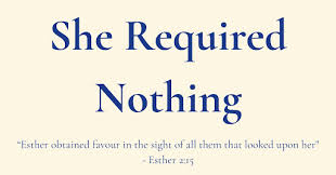 12 Before a young woman’s turn came to go in to King Xerxes, she had to complete twelve months of beauty treatments prescribed for the women, six months with oil of myrrh and six with perfumes and cosmetics. 13 And this is how she would go to the king: Anything she wanted was given her to take with her from the harem to the king’s palace. 14 In the evening she would go there and in the morning return to another part of the harem to the care of Shaashgaz, the king’s eunuch who was in charge of the concubines. She would not return to the king unless he was pleased with her and summoned her by name.