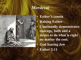 Mordecai takes a stand against the enemy. As a result Haman decides to not only rid the world of Mordecai but to kill all Jews. Mordecai’s appearance and actions were those of a person showing great grief or deep repentance according to the Jewish culture.