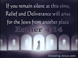 12 When Esther’s words were reported to Mordecai, 13 he sent back this answer: “Do not think that because you are in the king’s house you alone of all the Jews will escape. 14 For if you remain silent at this time, relief and deliverance for the Jews will arise from another place, but you and your father’s family will perish. And who knows but that you have come to your royal position for such a time as this?”