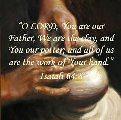 God knows we are a work in progress but He treats us as His masterpiece! “For we are God’s masterpiece. He has created us anew in Christ Jesus, so we can do the good things he planned for us long ago.” Ephesians 2:10 God does not expect perfection from us for only God is good and perfect in every way. But what He “seeks and searches for over all the earth” (2 Chronicles 16:9) is a committed heart who desires to humbly walk with Him. God renews our minds when we ask for His help as we seek Truth and His corrective discipline. God works continually on surrendered lives to mold and shape us to be more like Him. Our work is surrender to God. God’s work is to continue to lovingly compel us to His good, perfect, and pleasing will. (Romans 12) God is the Potter; We are the clay. Isaiah 64:8 and Jeremiah 18.