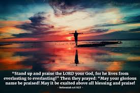 On the twenty-fourth day of the same month, the Israelites gathered together, fasting and wearing sackcloth and putting dust on their heads. 2 Those of Israelite descent had separated themselves from all foreigners. They stood in their places and confessed their sins and the sins of their ancestors. 3 They stood where they were and read from the Book of the Law of the Lord their God for a quarter of the day, and spent another quarter in confession and in worshiping the Lord their God. 4 Standing on the stairs of the Levites were Jeshua, Bani, Kadmiel, Shebaniah, Bunni, Sherebiah, Bani and Kenani. They cried out with loud voices to the Lord their God.5 And the Levites—Jeshua, Kadmiel, Bani, Hashabneiah, Sherebiah, Hodiah, Shebaniah and Pethahiah—said: “Stand up and praise the Lord your God, who is from everlasting to everlasting.”