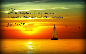 13 “Yet if you devote your heart to him and stretch out your hands to him, 14 if you put away the sin that is in your hand and allow no evil to dwell in your tent, 15 then, free of fault, you will lift up your face; you will stand firm and without fear. 16 You will surely forget your trouble, recalling it only as waters gone by. 17 Life will be brighter than noonday, and darkness will become like morning. 18 You will be secure, because there is hope; you will look about you and take your rest in safety. 19 You will lie down, with no one to make you afraid, and many will court your favor. 20 But the eyes of the wicked will fail, and escape will elude them; their hope will become a dying gasp.”