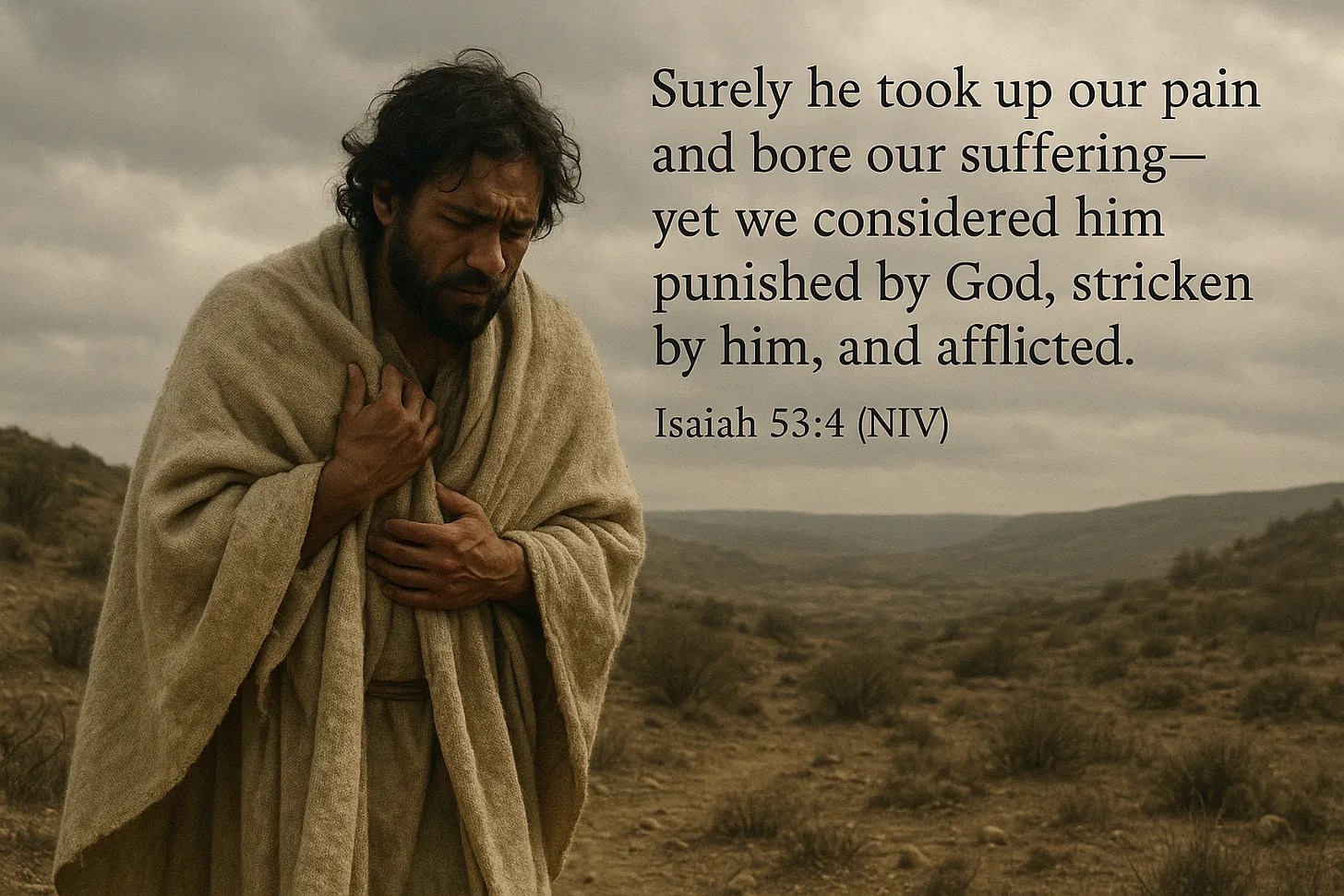 15 “I have sewed sackcloth over my skin and buried my brow in the dust. 16 My face is red with weeping, dark shadows ring my eyes; 17 yet my hands have been free of violence and my prayer is pure.