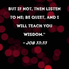 31 “Pay attention, Job, and listen to me; be silent, and I will speak. 32 If you have anything to say, answer me; speak up, for I want to vindicate you. 33 But if not, then listen to me; be silent, and I will teach you wisdom.”