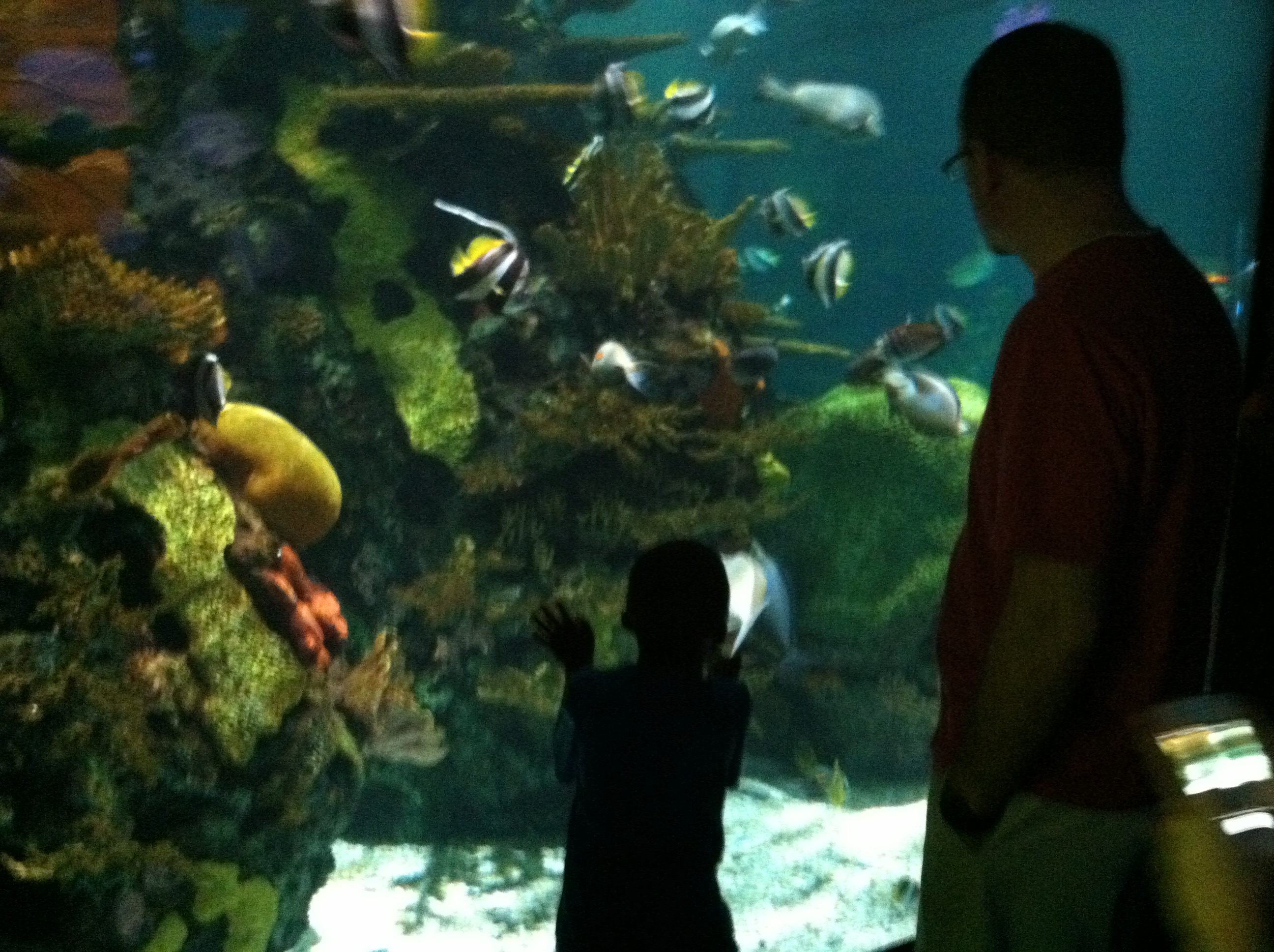 It was a beautiful sight to see, the grandkids in awe of God’s creation, watching all kinds of sea creatures dart and dash as we walked into the tunnel, under the water. They were excited to see sharks, starfish, and all colors of fish swimming in schools above us at the Aquarium. As a big group of small fish went by, I leaned down, pointed to the them and told our youngest, whose mouth was open in awe, with bright eyes gawking, that the group was called a ‘school of fish”. He quickly said, “No, schools out for spring break, that’s why we are here.”