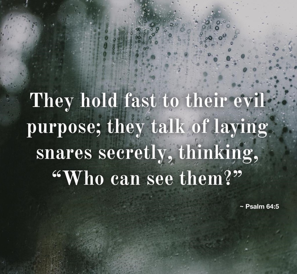 This heartfelt song of praise comes to mind as I read the lament of David, overwhelmed by his enemies. David knows gossip maims and eventually kills relationships. Gossip can bring down kingdoms! Presumptions and assumptions planted in the minds of people are the devil’s most prized tools for the destruction of all that good and right. But then David reminds by the end of his song of despair that God is to be praised for He will rescue us, protect us and bring us through the trouble and put our feet back on solid ground in our thinking, talking and walking with Him.