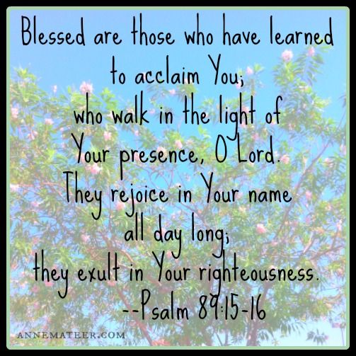 The passwords of praise are then shown in our responsive behavior to God’s love, truth, justice, righteousness, mercy and grace! “Blessed are the people who know…” Blessed are the ones who sing God’s song and tell His story. Blessed are the ones who live in His ways because of their love for Him.