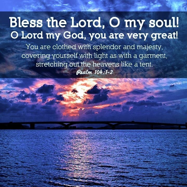 Creation. Doesn’t it all make sense now? Bless the Lord, O my soul, indeed! Now read this Psalm knowing God’s extreme love for us! God’s Word, all of it, is always about Him! Bless the Lord, o my soul…