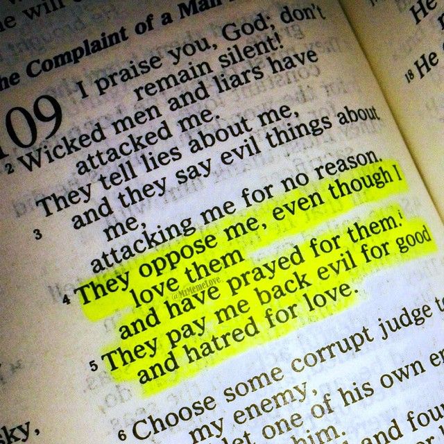 The silence of God indicated that the Lord was not answering prayer and working on David’s behalf. Often, we cry out to Him but nothing seems to happen. David reminded the Lord that he did not pray only when he needed help, for he praised the Lord often and thanked Him for His mercies. In fact, in the Hebrew text, “O God of my praise” opens the psalm. God was silent, but the enemy was vocal, speaking hateful, lying words and accusing David of crimes he had never committed. The word translated “adversaries” or “accusers” gives us the English word “Satan,” one of the names of the Devil. Satan is the accuser (Rev. 12:10) and the adversary of believers (1 Peter 5:8), and he uses people to accomplish this work. Like our Savior who was falsely accused, David was innocent of the charges. God’s people return good for evil, most people return good for good and evil for evil, but Satan’s crowd returns evil for good. David responded to God’s silence and to the enemy’s attacks by praying to the Lord. His faith did not waver.