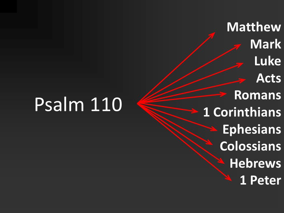 This psalm is quoted or alluded to in the New Testament more than any other psalm, verse 1 at least twenty-five times and verse 4 another five times. Ten of these quotations or allusions are in the book of Hebrews alone. Jesus used verse 1 to prove His deity and silence the Pharisees (Matt. 22:41-46) and also to answer the high priest during His trial (Matt. 26:64).