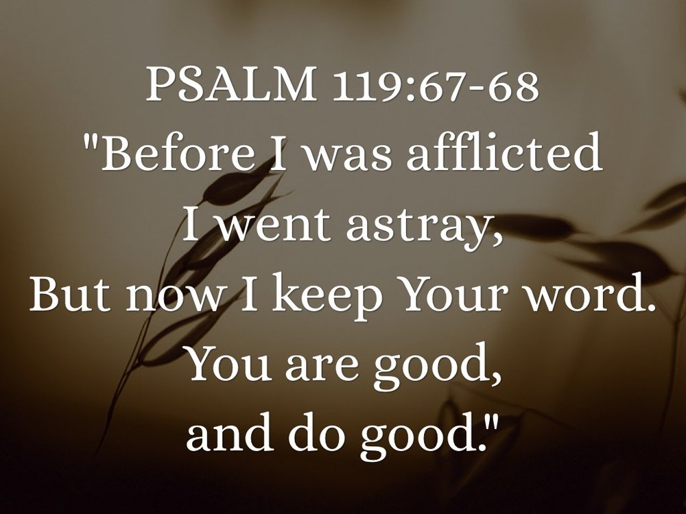 Playing in the background of our psalm is “Good, Good Father” by Chris Tomlin…let’s worship God and thank Him for being the Source of all the is Good!