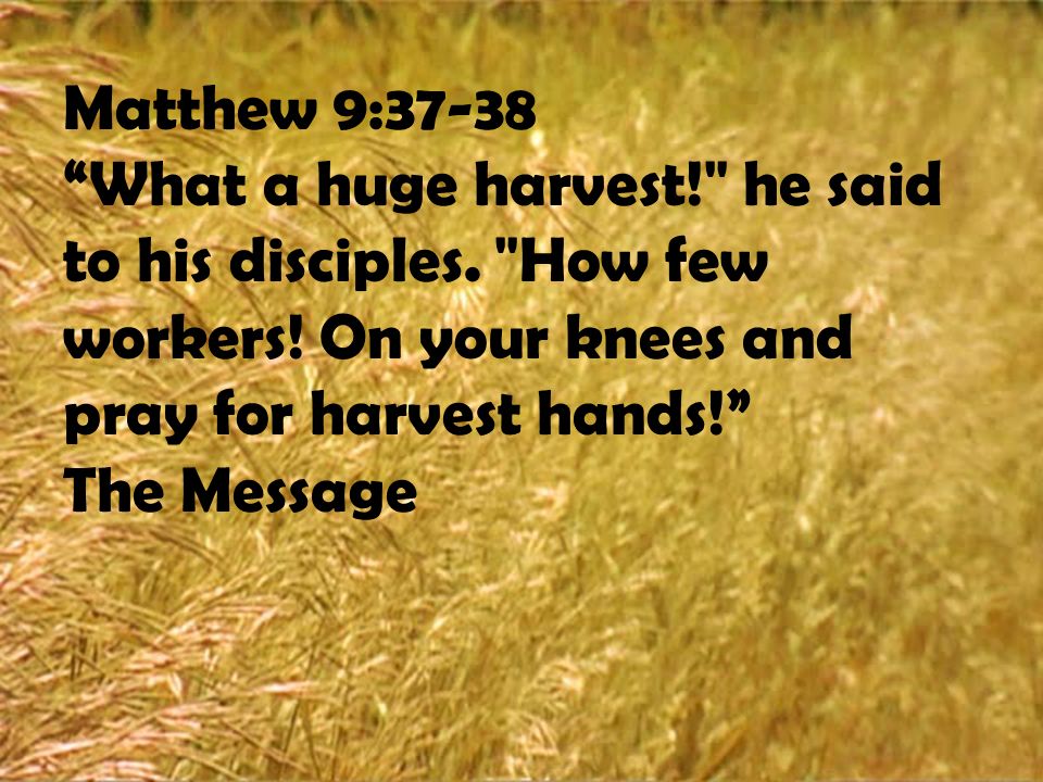 But who will go? Who will help in the harvest of souls? Who are willing to do the sweaty, arduous, consistent, compassionate work of a harvest hand day after day, week after week? That is the question that can only be answered by each one of us as God invites us to the work of helping people find and follow Jesus while developing a strong relationship with God, Himself in the process of growing strong right in the middle of the harvest!