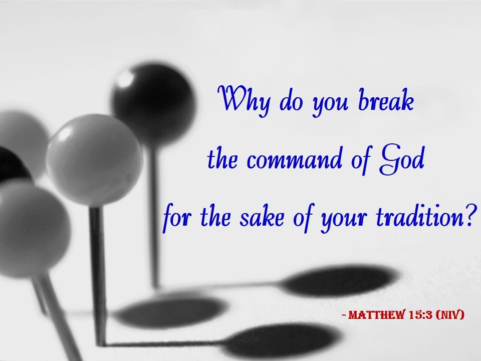 Are you humming the “tradition” song from Fiddler on the Roof? There are many traditional behaviors of this world, both inside and outside the church, that are the result of one person being offended by another so “laws” are made up to make sure they are not offended again. Man-made laws are created that become traditions to protect power and positions held by certain men who do not want to lose what they have gained. County lines, for instance, were drawn up many years ago for the protection of the political men in charge at the time. Go back in history of our own country and you will find the “backstories” of how state and county lines were decided and changed over the years. Some will say it has to do with population and for the most part that would be true, but we have to consider who has the final vote and that would be the powerful who we put into office to govern over us.