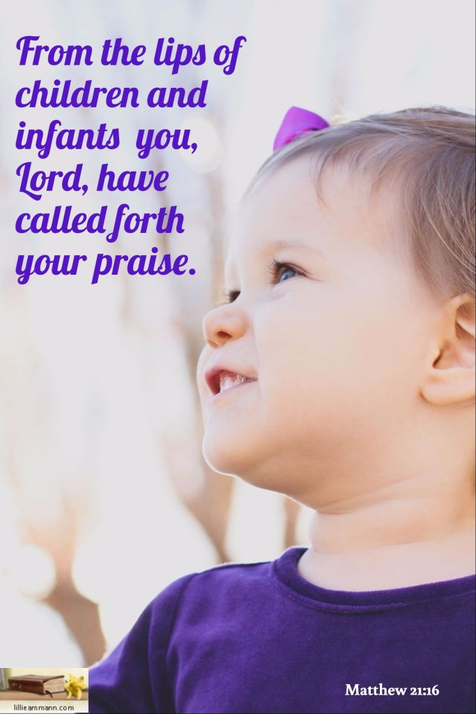 “Yes,” Jesus replied. “Haven’t you ever read the Scriptures? For they say, ‘You have taught children and infants to give you praise.’” 17 Then he returned to Bethany, where he stayed overnight.