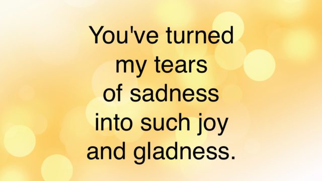 Friends, Isn’t that just like Jesus? He meets our needs before we know we need Him? He goes before us, behind us and beside us at all times. This is how sadness develops into gladness—by trusting Jesus! Jesus, Son of God, died for our sins but then rose again, defeating death for all of us! This is the Gladness part. This is our hope!