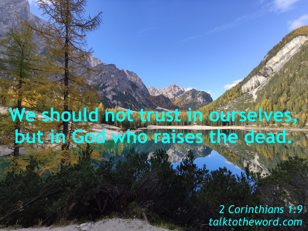 “Instead of trusting in our own strength or wits to get out of it, we were forced to trust God totally—not a bad idea since he’s the God who raises the dead!” This is what we learn in dark, confusing, troubling hard times in our lives. Trust Jesus. Always. God has the power to raise the dead! He has the power to see us through anything we will face on this earth!