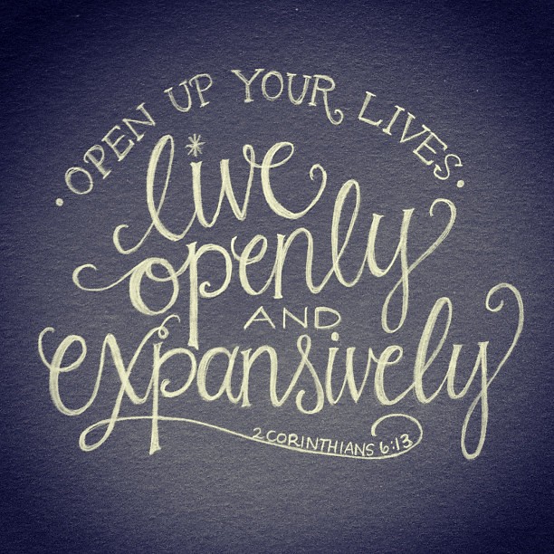 11-13 Dear, dear Corinthians, I can’t tell you how much I long for you to enter this wide-open, spacious life. We didn’t fence you in. The smallness you feel comes from within you. Your lives aren’t small, but you’re living them in a small way. I’m speaking as plainly as I can and with great affection. Open up your lives. Live openly and expansively!