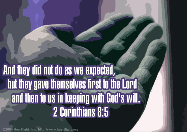 5-7 This was totally spontaneous, entirely their own idea, and caught us completely off guard. What explains it was that they had first given themselves unreservedly to God and to us. The other giving simply flowed out of the purposes of God working in their lives. That’s what prompted us to ask Titus to bring the relief offering to your attention, so that what was so well begun could be finished up. You do so well in so many things—you trust God, you’re articulate, you’re insightful, you’re passionate, you love us—now, do your best in this, too.