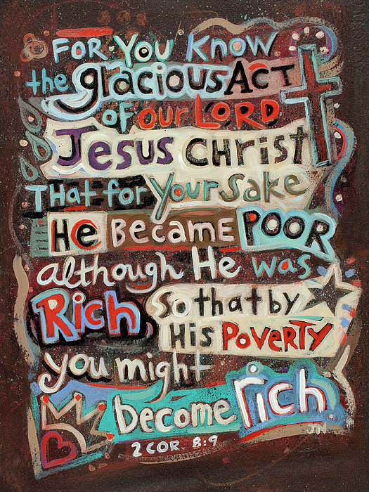 - You are familiar with the generosity of our Master, Jesus Christ. Rich as he was, he gave it all away for us—in one stroke he became poor and we became rich.