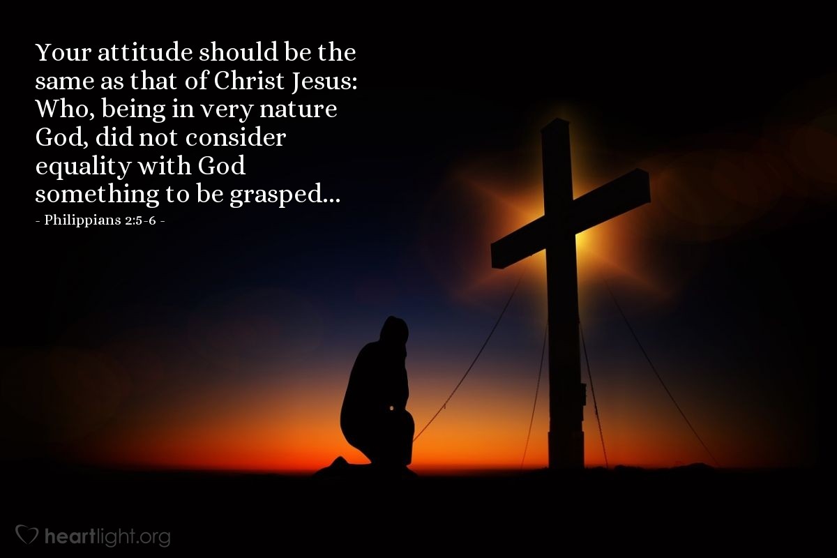 5-8 Think of yourselves the way Christ Jesus thought of himself. He had equal status with God but didn’t think so much of himself that he had to cling to the advantages of that status no matter what. Not at all. When the time came, he set aside the privileges of deity and took on the status of a slave, became human! Having become human, he stayed human. It was an incredibly humbling process. He didn’t claim special privileges. Instead, he lived a selfless, obedient life and then died a selfless, obedient death—and the worst kind of death at that—a crucifixion.