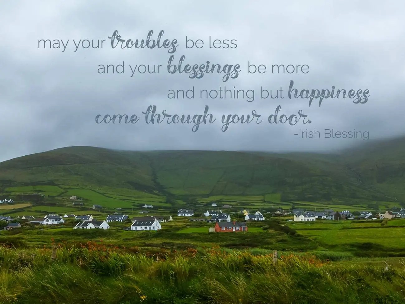 This is a translation, as this Irish blessing was originally written in the Irish language, but this is the form most commonly spoken today. There are additional verses in the full version, and another version adapted specifically as a travel blessing, but these are the most well-known words.