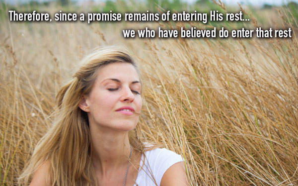 1-3 For as long, then, as that promise of resting in him pulls us on to God’s goal for us, we need to be careful that we’re not disqualified. We received the same promises as those people in the wilderness, but the promises didn’t do them a bit of good because they didn’t receive the promises with faith. If we believe, though, we’ll experience that state of resting. But not if we don’t have faith. Remember that God said,