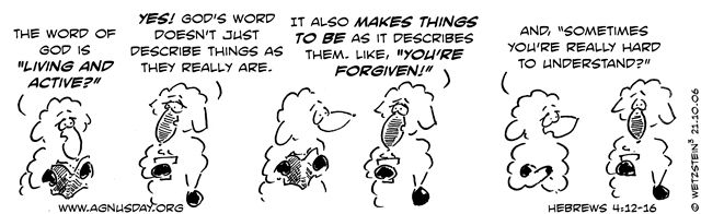 12-13 God means what he says. What he says goes. His powerful Word is sharp as a surgeon’s scalpel, cutting through everything, whether doubt or defense, laying us open to listen and obey. Nothing and no one can resist God’s Word. We can’t get away from it—no matter what.