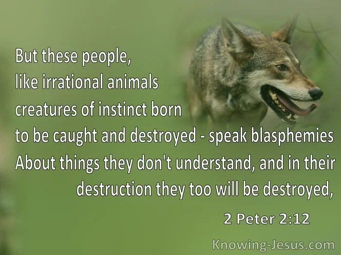 12-14 These people are nothing but brute beasts, born in the wild, predators on the prowl. In the very act of bringing down others with their ignorant blasphemies, they themselves will be brought down, losers in the end. Their evil will boomerang on them. They’re so despicable and addicted to pleasure that they indulge in wild parties, carousing in broad daylight. They’re obsessed with adultery, compulsive in sin, seducing every vulnerable soul they come upon. Their specialty is greed, and they’re experts at it. Dead souls!