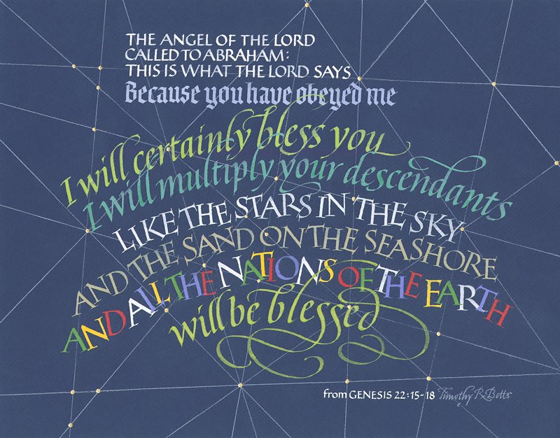 15-18 The angel of God spoke from Heaven a second time to Abraham: “I swear—God’s sure word!—because you have gone through with this, and have not refused to give me your son, your dear, dear son, I’ll bless you—oh, how I’ll bless you! And I’ll make sure that your children flourish—like stars in the sky! like sand on the beaches! And your descendants will defeat their enemies. All nations on Earth will find themselves blessed through your descendants because you obeyed me.”