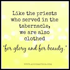 1-5 “Get your brother Aaron and his sons from among the Israelites to serve me as priests: Aaron and his sons Nadab, Abihu, Eleazar, Ithamar. Make sacred vestments for your brother Aaron to symbolize glory and beauty. Consult with the skilled craftsmen, those whom I have gifted in this work, and arrange for them to make Aaron’s vestments, to set him apart as holy, to act as priest for me. These are the articles of clothing they are to make: Breastpiece, Ephod, robe, woven tunic, turban, sash. They are making holy vestments for your brother Aaron and his sons as they work as priests for me. They will need gold; blue, purple, and scarlet material; and fine linen.