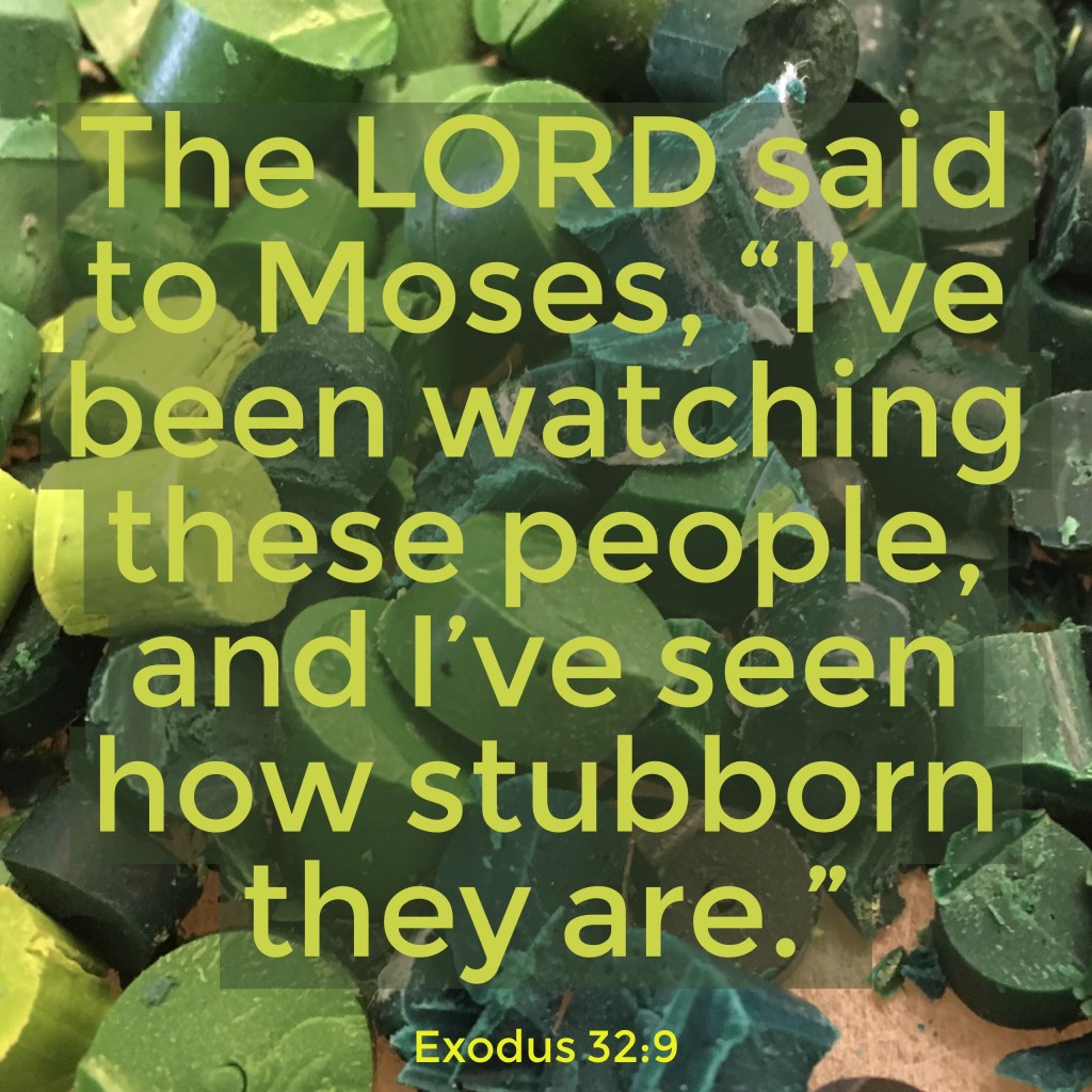 God’s Chosen were left unattended by Moses, God’s appointed leader, for forty days and nights so God could teach him what to teach His People. Here is the situation. God’s People have a new found freedom from slavery—from harsh overseers constantly telling them what to do and when to do it under challenging, impossible at times, circumstances. With this new found freedom in the wilderness, with not much to do, the sin of arrogance sets in with a side dish of stubbornness. God has done everything to save them. His People respond with childish behaviors.