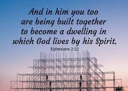 “Consequently, you are no longer foreigners and strangers, but fellow citizens with God’s people and also members of his household, built on the foundation of the apostles and prophets, with Christ Jesus himself as the chief cornerstone. In him the whole building is joined together and rises to become a holy temple in the Lord. And in him you too are being built together to become a dwelling in which God lives by his Spirit.” Ephesians 2:19-22