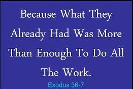 The people were ordered to stop bringing offerings! There was plenty of material for all the work to be done. Enough and more than enough.