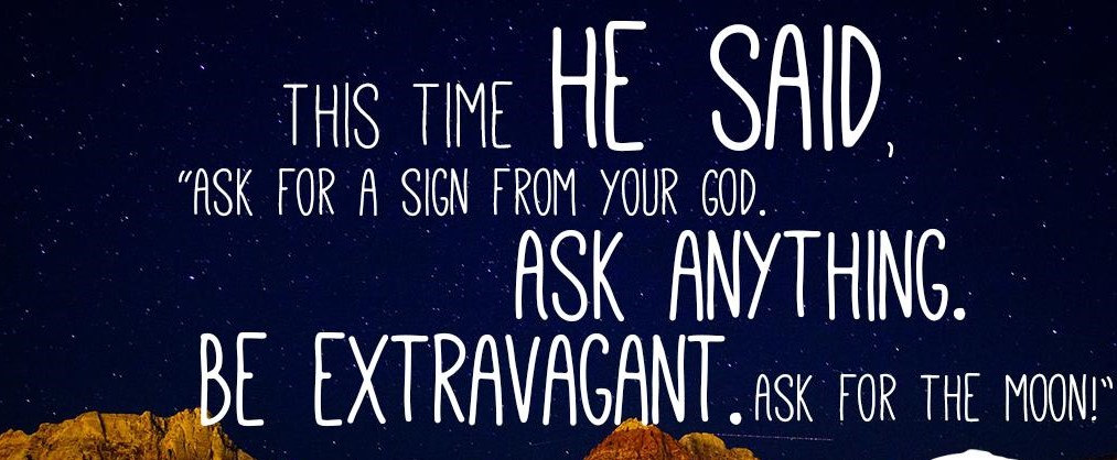 10-11 God spoke again to Ahaz. This time he said, “Ask for a sign from your God. Ask anything. Be extravagant. Ask for the moon!”