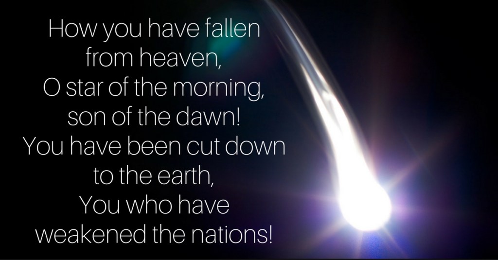 “The picture is of a mighty monarch whose pride has brought him to destruction. This is what happened to Belshazzar when Darius the Mede captured Babylon in 539 B.C. (See Daniel 5). Isaiah described the king’s arrival in Sheol, the world of the dead, where the king’s wealth, glory, and power were gone. The dead kings already in Sheol stood in tribute to him, but it was all a mockery. Death is the great leveler; no kings are in the world of the dead. “How you are fallen from heaven, O Lucifer, son of the morning” suggests that this king’s glory did not last very long. The morning star shines but is soon swallowed up by the light of the sun.”