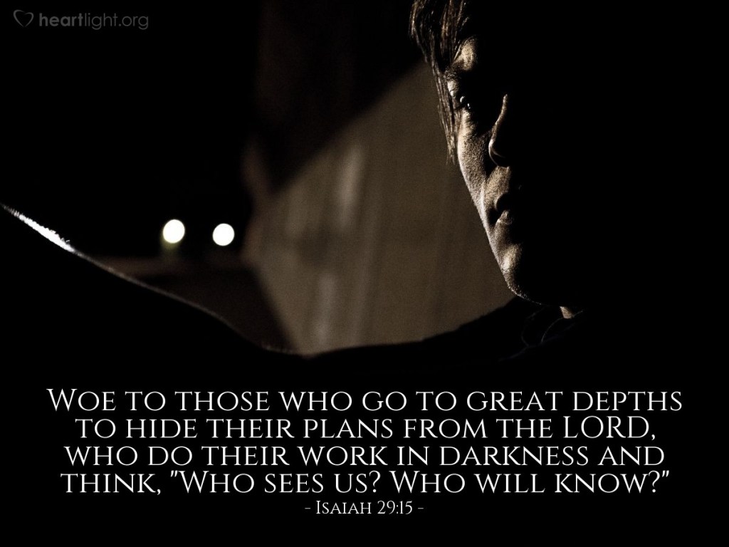 This “woe” exposed the devious political tactics of the rulers of Judah, who thought that God would not hold them accountable for what they were doing. They were trying to turn things upside down, like the clay telling the Potter what to do. If only people would seek the counsel of the Lord instead of depending on their own wisdom and fragile human promises!