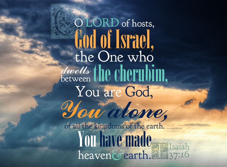 15-20 Then Hezekiah prayed to God: “God-of-the-Angel-Armies, enthroned over the cherubim-angels, you are God, the only God there is, God of all kingdoms on earth. You made heaven and earth. Listen, O God, and hear. Look, O God, and see. Mark all these words of Sennacherib that he sent to mock the living God. It’s quite true, O God, that the kings of Assyria have devastated all the nations and their lands. They’ve thrown their gods into the trash and burned them—no great achievement since they were no-gods anyway, gods made in workshops, carved from wood and chiseled from rock. An end to the no-gods! But now step in, O God, our God. Save us from him. Let all the kingdoms of earth know that you and you alone are God.”