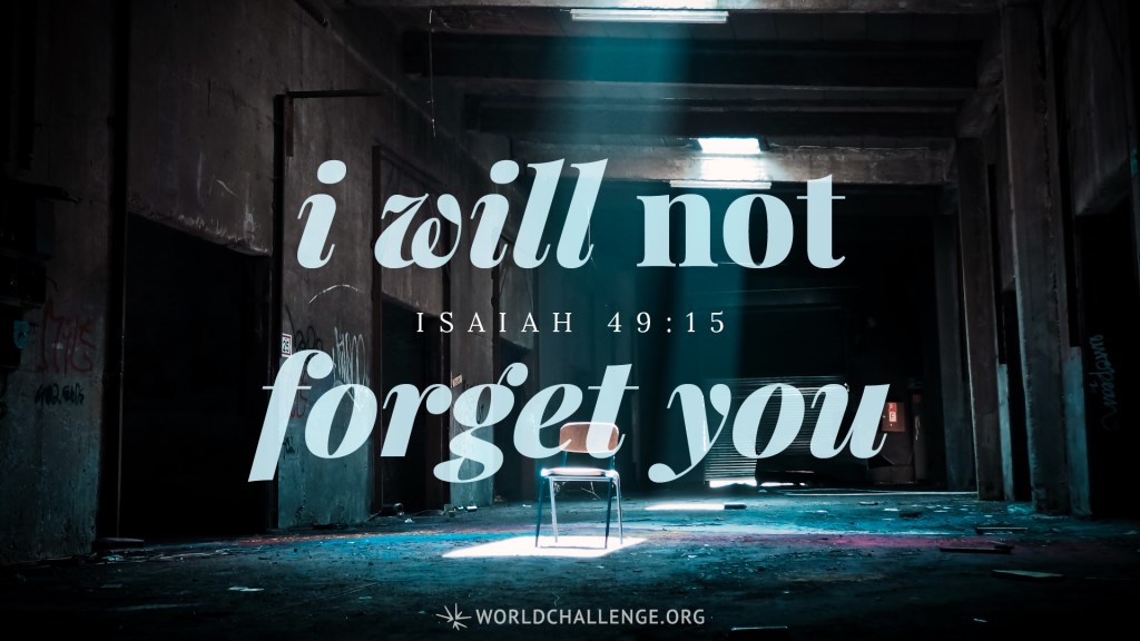 “Look up, look around, look well”and realize the depth of love God has for those who believe. God is for us, not against us. God sent Jesus, Light of the World, to pay for our sins so we can be set free from darkness to love Him back. God comforts those who struggle, are hurt, bruised, and broken by the dark world. God never, ever forgets us. Our names are engraved on His Hand! We are on His mind continually.