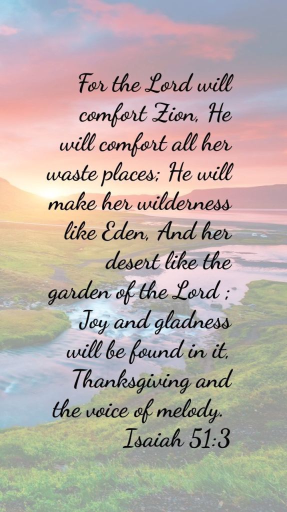 Because the Lord is God, and our God, we can rejoice in hard, challenging times. In verse 3, the Lord speaks of his people in the difficult times: “Joy and gladness will be found in her, thanksgiving and the voice of song.”
