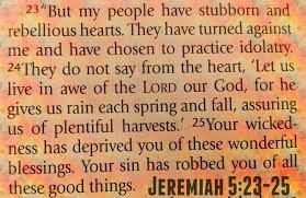 Survey says…When Jeremiah’s survey was concluded, he had found not one person who was honest and truthful. These days we learn of new technological advances weekly; we’re surrounded by change. But human nature has not changed. What Jeremiah found in his day, we find today, don’t we? What would be the results of a God-survey today? It’s been done…often. Google George Barna, Christian statistician of our day.