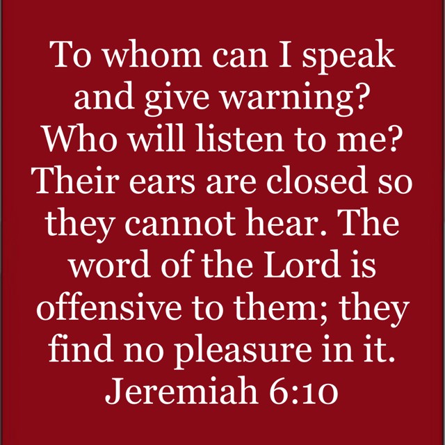 First, the Lord spoke to His people and warned them that judgment was coming. The Jews had three main ways to get military information: from the watchmen on the walls, from trumpet signals, and from signal fires lit on high places. Jeremiah’s hometown of Anathoth was in Benjamin tribal lands, so he started by warning his own neighbors to get out of Jerusalem. But still God’s people refused to listen to God’s warnings through his prophet Jeremiah. They are now at the point of no return. They will be captured and exiled to Babylon.