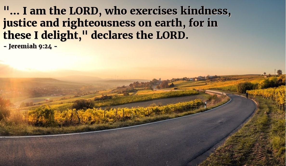 “I’m God, and I act in loyal love. I do what’s right and set things right and fair, and delight in those who do the same things. These are my trademarks.” –God