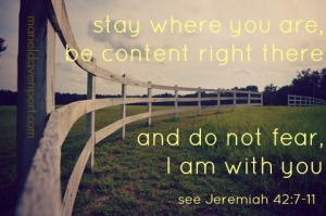 13-17 “But do not say, ‘We’re not staying around this place,’ refusing to obey the command of your God and saying instead, ‘No! We’re off to Egypt, where things are peaceful—no wars, no attacking armies, plenty of food. We’re going to live there.’ If what’s left of Judah is headed down that road, then listen to God’s Message. This is what God-of-the-Angel-Armies says: ‘If you have determined to go to Egypt and make that your home, then the very wars you fear will catch up with you in Egypt and the starvation you dread will track you down in Egypt. You’ll die there! Every last one of you who is determined to go to Egypt and make it your home will either be killed, starve, or get sick and die. No survivors, not one! No one will escape the doom that I’ll bring upon you.’