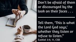 7-9 “But it won’t work that way with the family of Israel. They won’t listen to you because they won’t listen to me. They are, as I said, a hard case, hardened in their sin. But I’ll make you as hard in your way as they are in theirs. I’ll make your face as hard as rock, harder than granite. Don’t let them intimidate you. Don’t be afraid of them, even though they’re a bunch of rebels.”