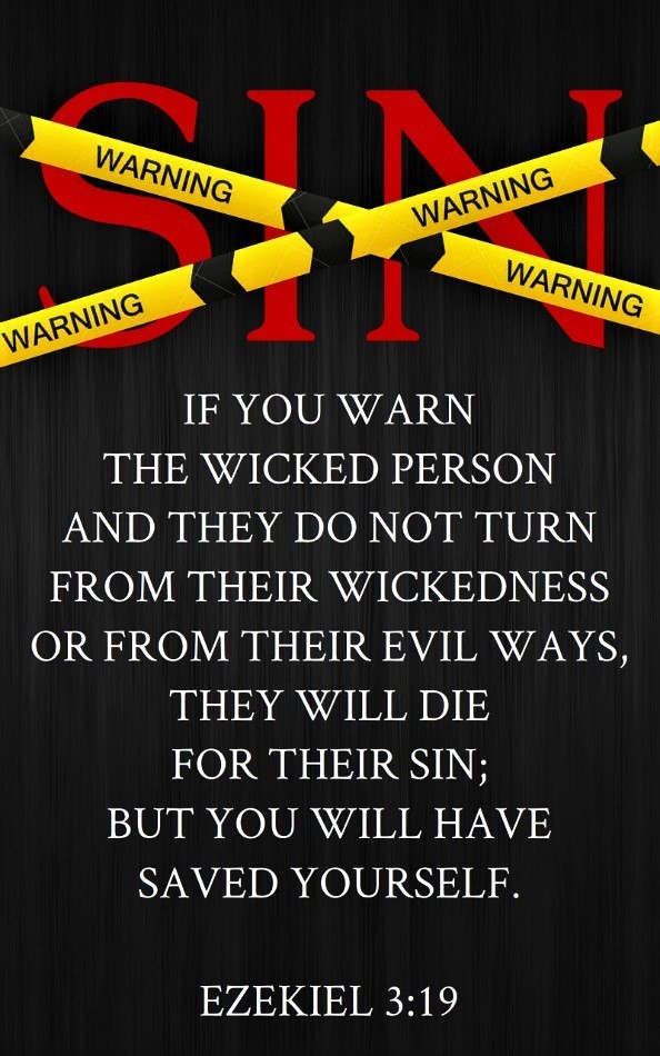 17-19 “Son of man, I’ve made you a watchman for the family of Israel. Whenever you hear me say something, warn them for me. If I say to the wicked, ‘You are going to die,’ and you don’t sound the alarm warning them that it’s a matter of life or death, they will die and it will be your fault. I’ll hold you responsible. But if you warn the wicked and they keep right on sinning anyway, they’ll most certainly die for their sin, but you won’t die. You’ll have saved your life.