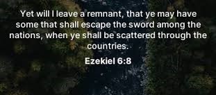 “Against the background of this nationwide slaughter, Ezekiel reminded the people of the grace of God in sparing a remnant, a topic that he had illustrated when he had put some of the shaved hair in the hem of his garment (chapter 5). He would mention the remnant again in subsequent chapters. That a remnant of faithful people would be spared was part of the covenant promise of God.” –Warren Wiersbe, Wiersbe Study Bible