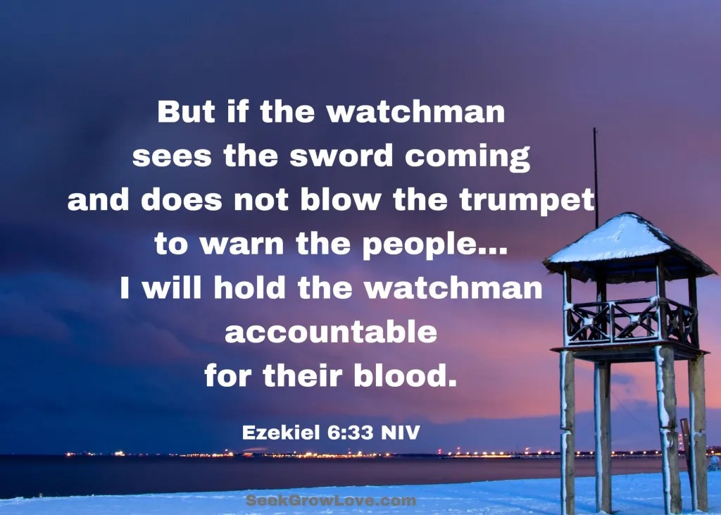 Ezekiel the watchman was warning the people that an invasion was coming because God had seen their sins and was about to punish them. The people had turned to all the world around them had to offer—idols of man that promoted behaviors that would soon destroy their souls. Sin is all that is not of God. Sins of perversion hurt from the inside out and outside in, destroying the body with sicknesses while killing all that stands in the way of a voracious appetite to satisfy self.