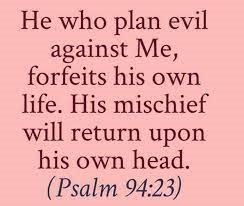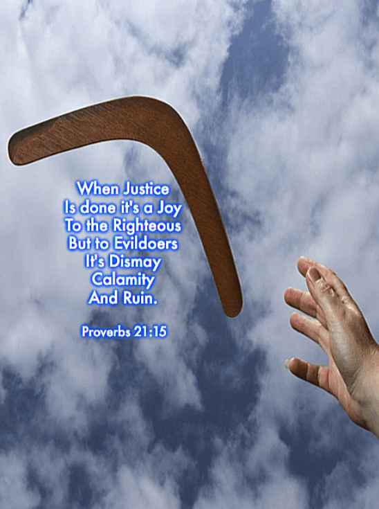 “What goes around, comes around!” “What you do comes back to haunt you!” “Don’t dish out what you can’t take!” “Those who do evil are repaid with evil!” We call it the boomerang effect. Some call it karma; I call it God preserving and protecting what is good and giving justice to what is evil.