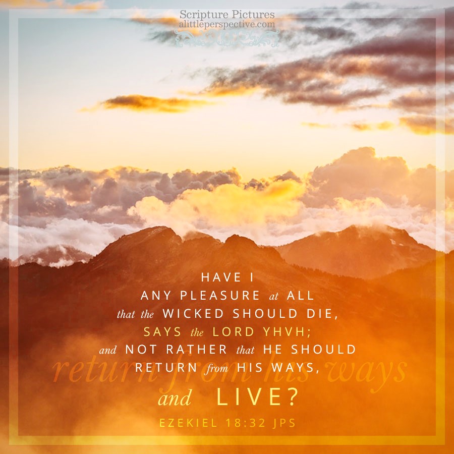 11 “Tell them, ‘As sure as I am the living God, I take no pleasure from the death of the wicked. I want the wicked to change their ways and live. Turn your life around! Reverse your evil ways! Why die, Israel?’